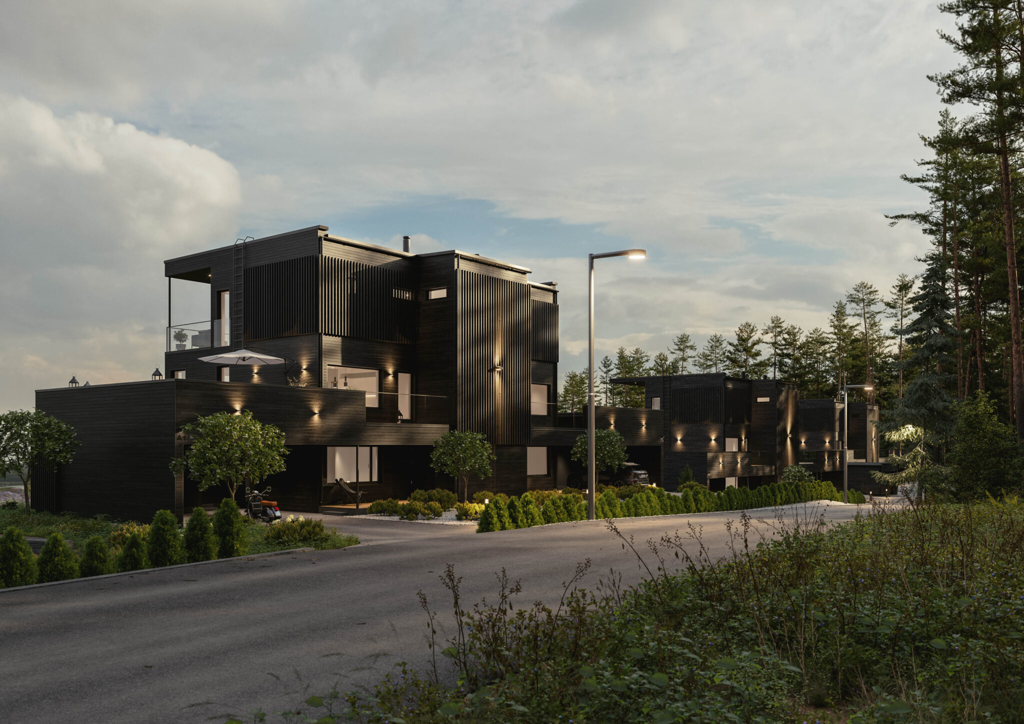 Viimeistely ei suinkaan rajoitu pelkästään sisätiloihin, vaan jatkuu aina hulppeille terasseille, autokatoksille sekä piha-alueille asti. Pihat tullaan viimeistelemään ja maisemoimaan valmiiksi nimekkään pihasuunnittelija ja puutarhuri Minna Toivasen suunnitelman mukaan.
